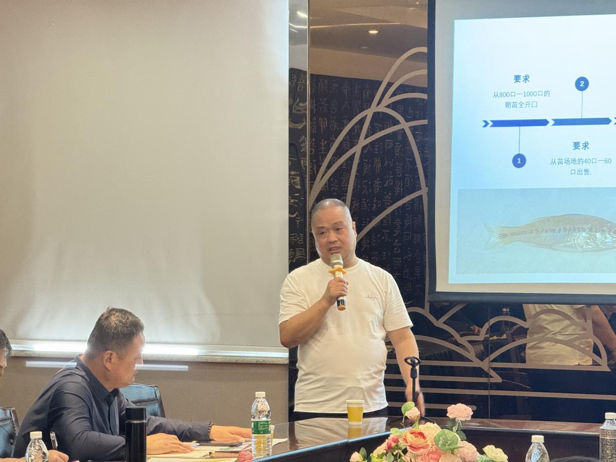 會(huì)議由公司營銷總監(jiān)劉瑞祥主持。會(huì)議開始后,公司總經(jīng)理康魯風(fēng)致歡迎詞,康總首先對大家的到來表示熱烈的歡迎,向長期支持公司發(fā)展的合作伙伴與養(yǎng)殖戶致以誠摯感謝。康總介紹,近年來公司持續(xù)加大科研投入,不斷深耕水產(chǎn)領(lǐng)域,豐富產(chǎn)品種類,已形成較為完善的技術(shù)體系。同時(shí)期待通過此次會(huì)議,搭建起公司與廣大養(yǎng)殖戶的交流的平臺(tái)。